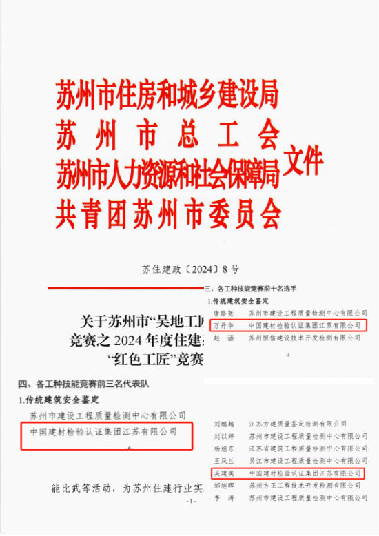 • 蘇州市2024年度住建系統一線崗位職工“紅色工匠”競賽表彰(個人、集體)
